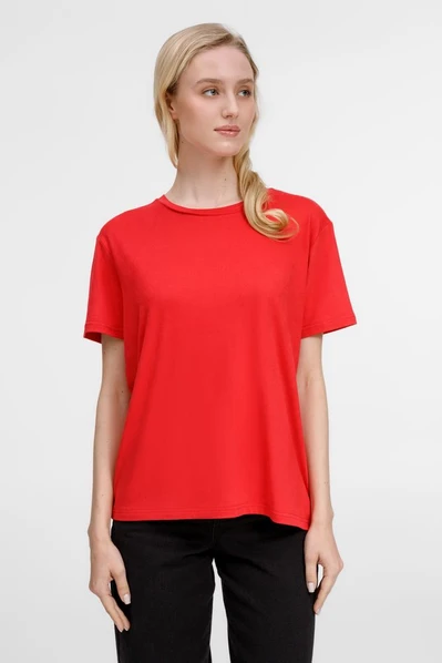 Красная футболка Senti дарит исключительное удобство и приятные ощущения. Ткань нежно прилегает к коже, а ее мягкая поверхность напоминает бархатистую кожицу персика благодаря специальной обработке с эффектом peach touch («прикосновение персика»). Смешанный состав из полиэстера с небольшим добавлением эластана делает футболку идеальным выбором для любых спортивных активностей и просто динамичной жизни: материал хорошо пропускает воздух, быстро сохнет и хорошо тянется.