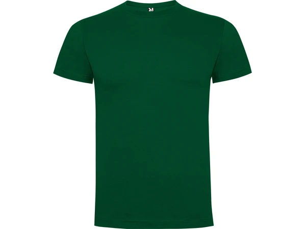 Темно-зеленая мужская футболка с коротким рукавом. По горловине и плечевым швам плоскошовная строчка для дополнительного усиления.