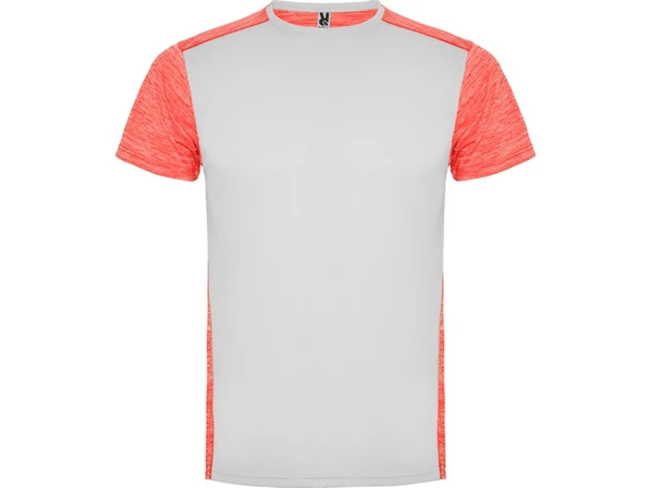 Футболка кораллово-белого цвета Zolder с коротким рукавом из технологического полотна. Круглый вырез горловины. Комбинация двух полиэстеровых полотен. Основное полотно на полочке со структурой, дополнительное полотно на спинке, рукавах и плечах с меланжевым эффектом. Задняя часть немного длиннее. Легко сохнущее дышащее полотно. В ассортименте так же присутствует аналогичная детская модель.