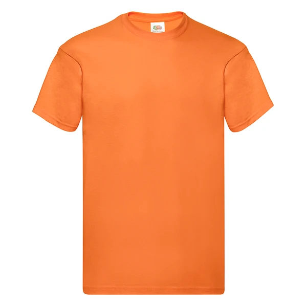 Яркая классическая футболка оранжевого цвета Original Full Cut T от бренда Fruit of the Loom. Вырез лодочкой с резинкой.