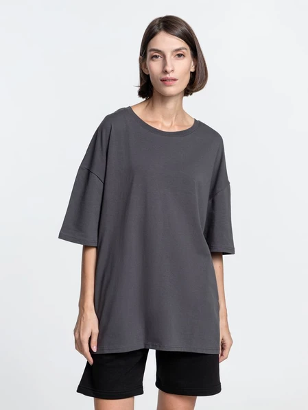 Объемная кроеная темно-серая футболка Crosstown с удлиненным рукавом из гребенного хлопка с эластаном не стесняет движений и создает модный расслабленный силуэт.