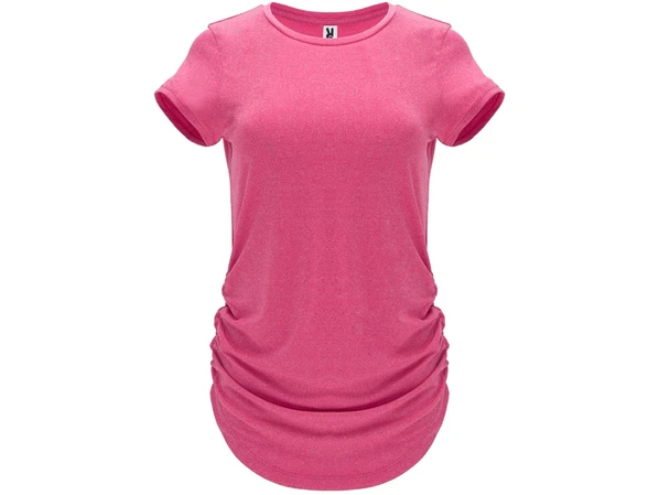 Спортивная розовая футболка с коротким рукавом для женщин. Полотно из полиэстера на ощупь напоминающее хлопок.