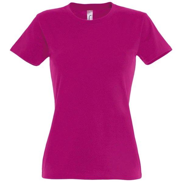 Модель премиум-класса из коллекции одежды Sols, женственный приталенный силуэт. прочная футболка цвета фуксии с боковыми швами, ворот – резинка, укрепляющая тесьма по вороту.