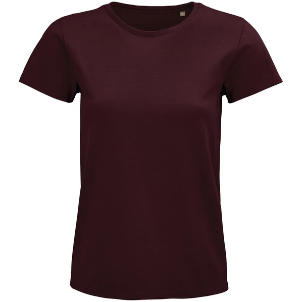 Женская бесшовная облегающая футболка из бордового джерси с круглым вырезом. Классическая модель для спорта и повседневной носки.