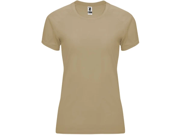 Спортивная футболка коричневого цвета Roly Bahrain с коротким рукавом реглан для женщин. Круглый вырез горловины с отделкой плоским швом. Рукав сложного кроя для обеспечения дополнительного удобства при занятиях спортом. Отделка плоским швом с застилом по пройме и рукавам. Технологичное полотно с функцией DRY CONTROL и защитой от UV излучения.