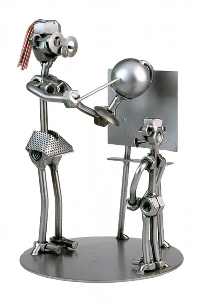 Металлическая фигурка "Школьный педагог" выполненна вручную талантливым дизайнером из Германии. Изделие изображает учителя или педагога в классической позе, символизируя знания, наставничество и уважение к образованию.