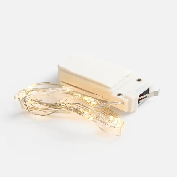 Прикрепите гирлянду в коробке на двусторонний скотч (прямо под крышку), передвиньте переключатель и закройте коробку.