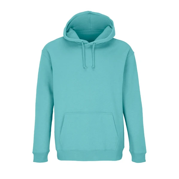 Практичное голубое худи унисекс из хлопка и переработанного полиэстера с карманом-кенгуру.