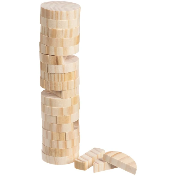 Игра состоит из 54 деревянных брусочков (18 этажей). Поставляется в черной картонной коробке с контурным изображением башни.