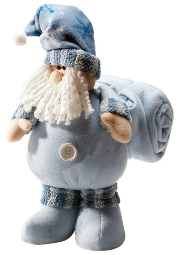 Дед Мороз с пледом — мягкий флисовый плед, аккуратно "привязанный" лентами к праздничной игрушке. Он согреет вас в зимние вечера и создаст уютную атмосферу в доме.