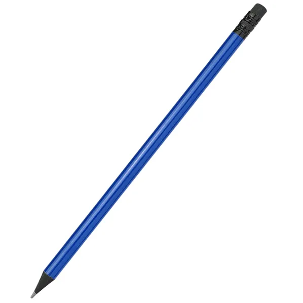 Деревянный темно-синий цветной карандаш NEGRO с черным ластиком. Цвет грифеля черный, заточенный. Дерево черного цвета. Краска глянцевая. Твердость карандаша — HB