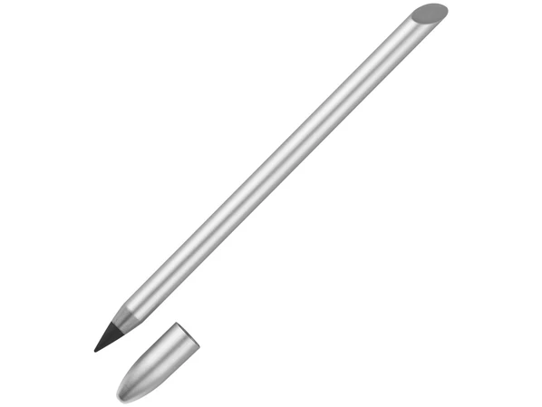 Вечный карандаш серебристого цвета с грифелем из спрессованного графита, облеченный в металлический корпус. Лаконичный дизайн пишущего инструмента позволит сделать его идеальным инструментом продвижения для ваших идей и бизнеса — все внимание будет приковано исключительно к вашему лого благодаря простой форме корпуса и однотонной гамме.