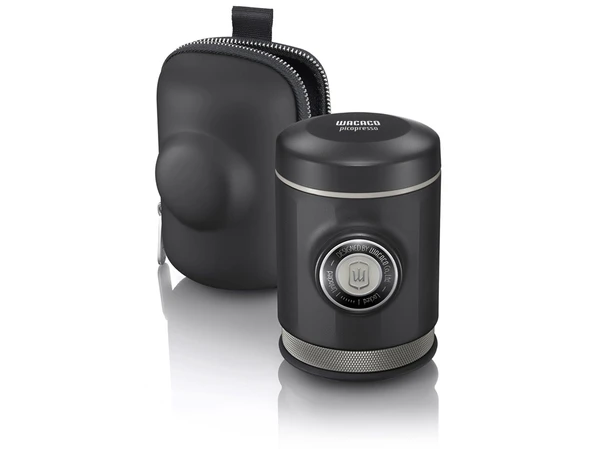 Ручная портативная кофемашина WACACO Picopresso для молотого кофе. Встроенный ручной насос создает давление 18 бар. Вес 350 грамм, объем для приготовления кофе 80 мл.