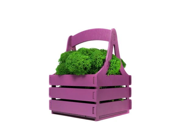 Фиолетовая корзинка со мхом станет прекрасным украшением вашего интерьера. Композиция изготовлена из дерева и собирается вручную. Стабилизированный мох ягель — экологический природный материал: он не нуждается в поливе, не требует освещения, не собирает пыль, сохраняет привлекательный внешний вид в течение 7 лет, гипоаллергенный.