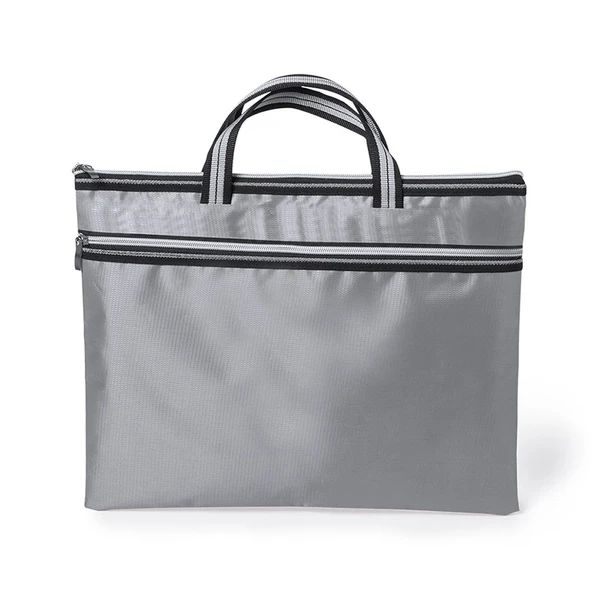 Серая сумка для документов с застежкой-молнией и передним карманом из мягкого полиэстера 300D с ручками для переноски оригинального двухцветного дизайна и молниями подходящего цвета.