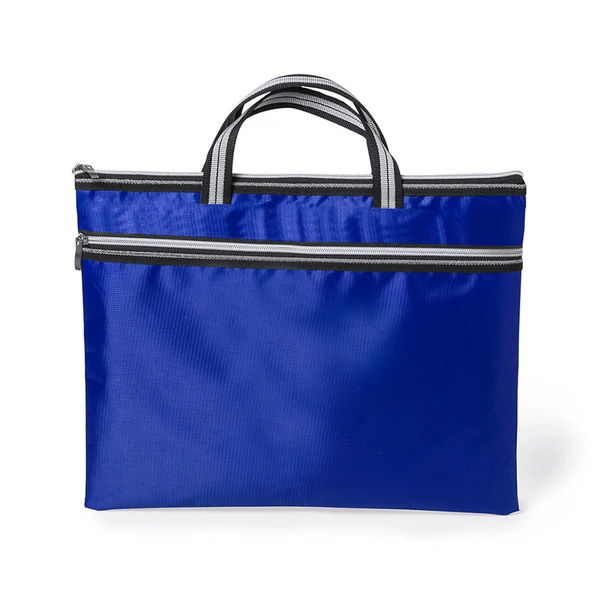Синяя сумка для документов с застежкой-молнией и передним карманом из мягкого полиэстера 300D с ручками для переноски оригинального двухцветного дизайна и молниями подходящего цвета.