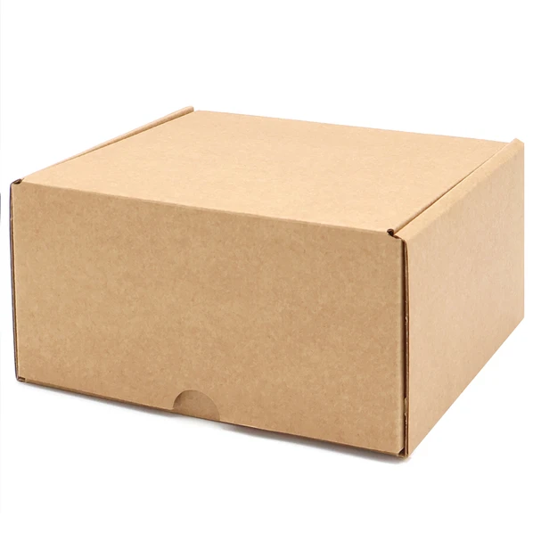 Самосборная коробка из бурого микрогофрокартона с внутренними размера 15,5х15,1х8 см.