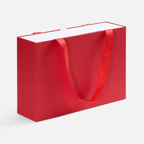Коробка-кейс красного цвета с выдвижным внутренним отделением.