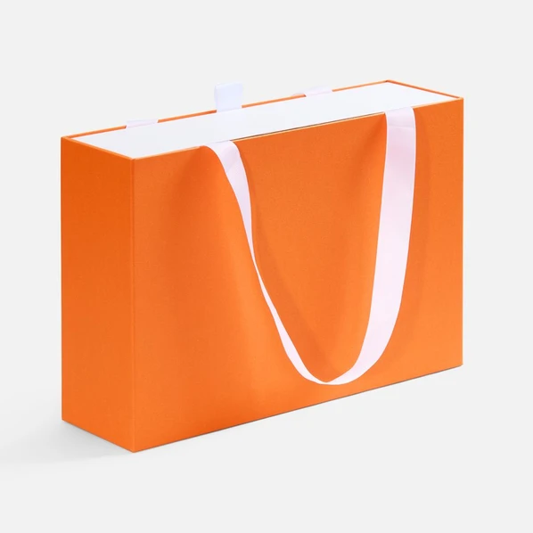Коробка-кейс оранжевого цвета с выдвижным внутренним отделением.