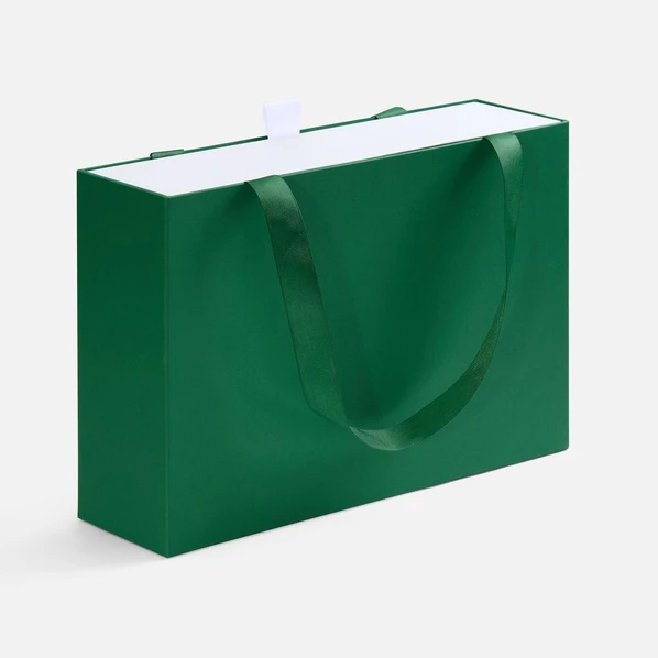 Коробка-кейс зеленого цвета с выдвижным внутренним отделением.