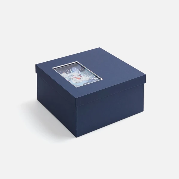 Элегантная коробка из переплетного картона The Blue Bear, L станет настоящим украшением зимних праздников. Ее главная изюминка — очаровательное окошко с 3D-иллюстрацией, которое словно приглашает в мир новогодних чудес.