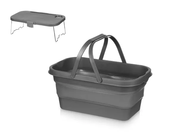 Крышка этой корзинки для пикника превращается в удобный столик буквально по щелчку пальцев: для этого нужно просто снять ее и разложить металлические ножки. На этом магия корзинки не заканчивается — силиконовый корпус складывается, что очень удобно, когда пикник закончен, и все содержимое съедено.