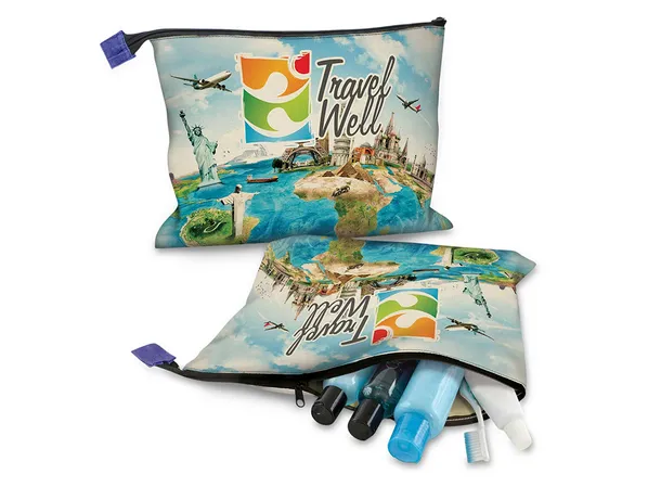 Дорожная косметичка из натурального хлопка - незаменимый спутник в поездках. Классическая форма и мягкий материал позволяет компактно хранить косметику и гигиенические принадлежности, необходимые в дороге.
