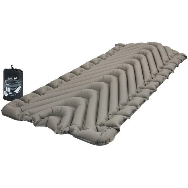 Ультралегкий серый коврик Static V Luxe увеличенной ширины с анатомическим дизайном и плюшевой поверхностью создает ощущение отдыха на домашней кровати. Экономит время и энергию за счет быстрой системы надува. Подходит для использования на земле и в палатке.
