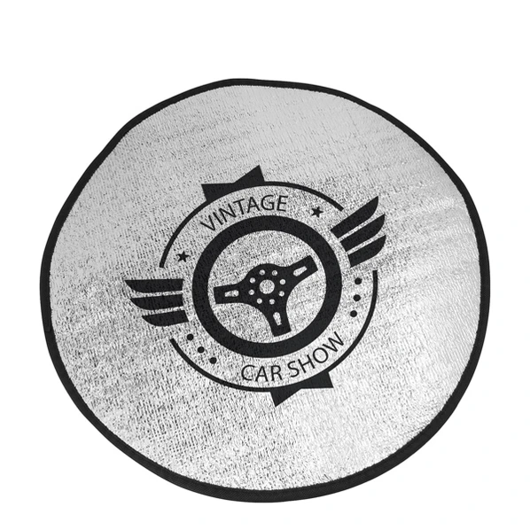 Солнцезащитный козырек рулевого колеса с передней частью из алюминия и задней частью из белого пенопласта. Черная окантовка.