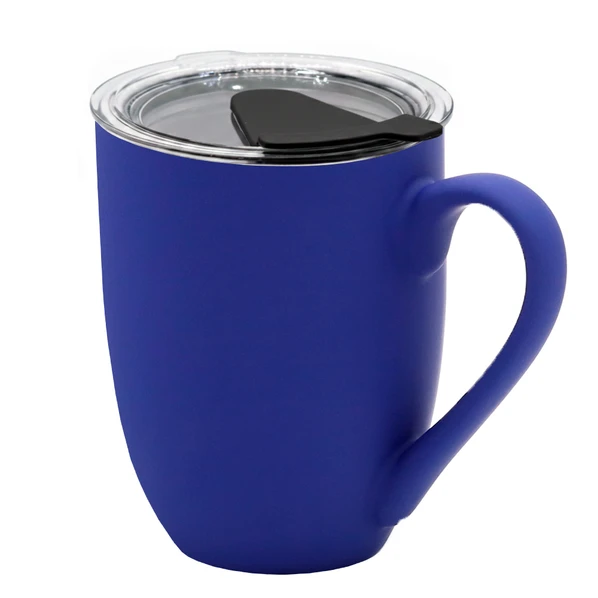 Кружка керамическая с крышкой Velvet Duo, 350 мл, soft touch, темно-синяя фото