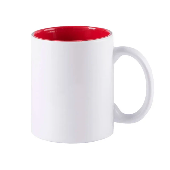 Кружка со особым покрытием белого цвета, специально разработанным для лазерной гравировки. Яркий красный цвет внутри, белый матовый — снаружи.
