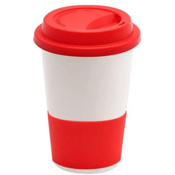 Красная кружка объемом 420 мл. пригодится и дома, и в дороге. Яркая силиконовая крышка защитит от проливания как горячего, так и холодного напитка, а декоративный элемент силиконовая манжета не позволит кружке выпасть из рук.
