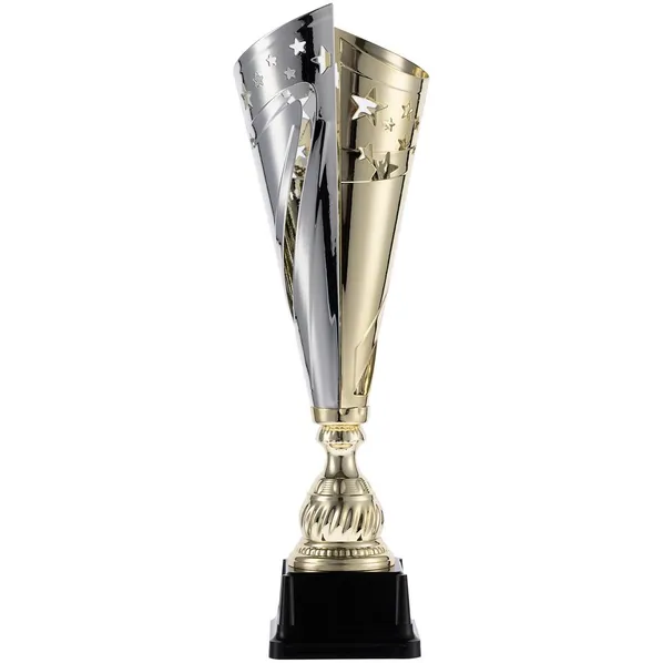 Золотистый кубок Flamous Fusion с оригинальным дизайном чаши отлично подойдет для награждения участников любых соревнований: как спортивных, так и творческих.