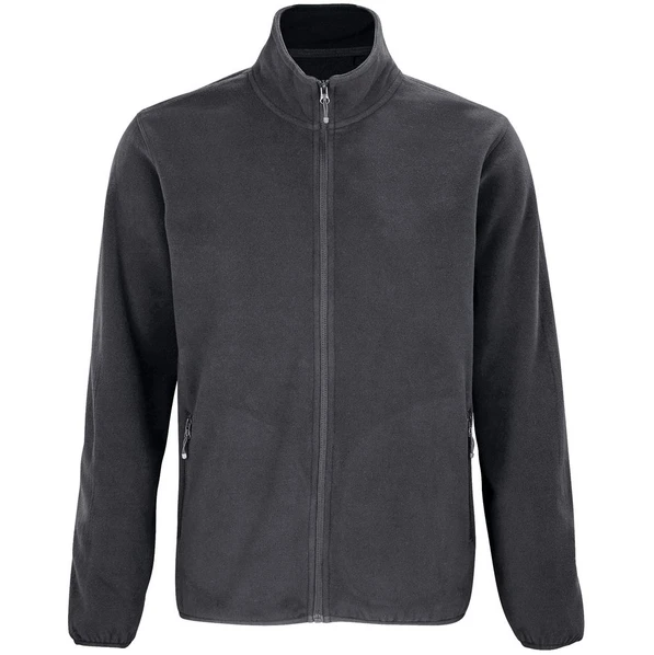 Темно-серая флисовая мужская куртка с воротником-стойкой.