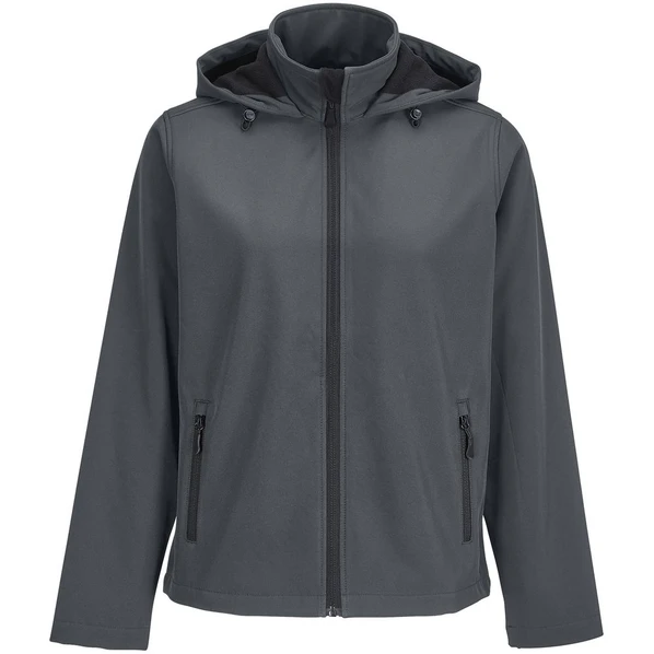 Легкая темно-серая женская куртка с капюшоном Race Women выполнена из двухслойного материала софтшелл. Мембранный материал софтшелл сохраняет тепло и не промокает, а изнанка из флиса обеспечивает комфорт и тепло.