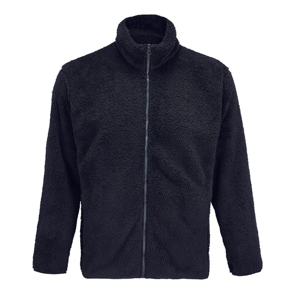 Флисовая темно-синяя куртка унисекс на пластиковой молнии с металлическим пуллером.