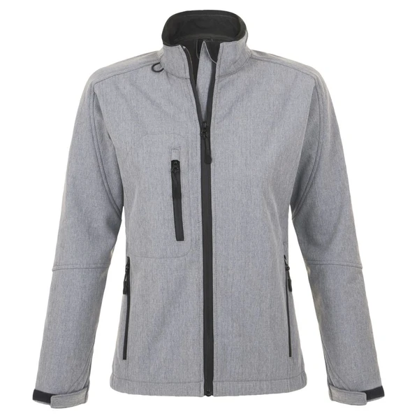 Стильная женская куртка Sol's Roxy 340 цвета серый меланж с контрастными черными элементами – практичная и функциональная вещь для повседневного использования в прохладные дни.
