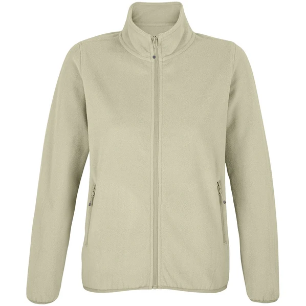 Флисовая женская куртка бежевого цвета с воротником-стойкой.