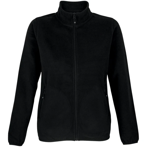 Флисовая женская куртка черного цвета с воротником-стойкой.