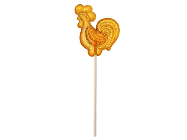 Новогодний сладкий леденец на палочке «Петушок». Состав: сахар, патока, ароматизатор натуральный "Апельсин", краситель пищевой (кармуазин, тартразин).