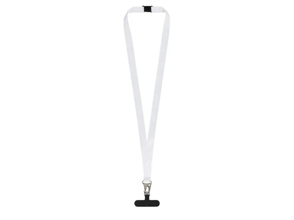 Трендовый и функциональный аксессуар - бело-черная лента с держателем для телефона. Благодаря ей можно носить телефон через плечо или просто на шее.