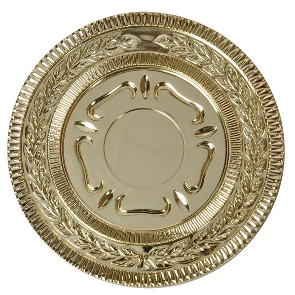 Ажурная медаль золотистого цвета с габаритными размерами 12х12х2,2 см. Диаметр медали составляет 8,7 см. Подходит для нанесения лазерной гравировки!