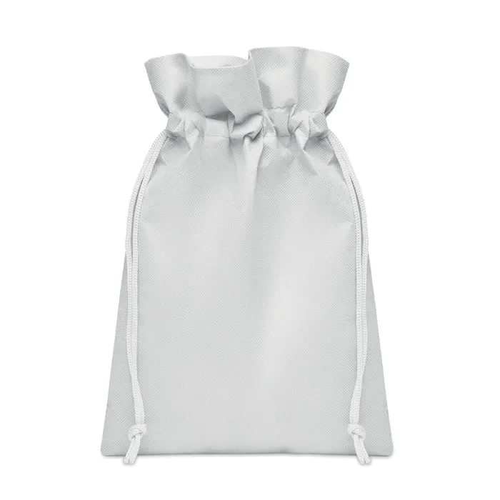 Маленький подарочный белый мешочек со шнурком из нетканого материала RPET 80 г/м².