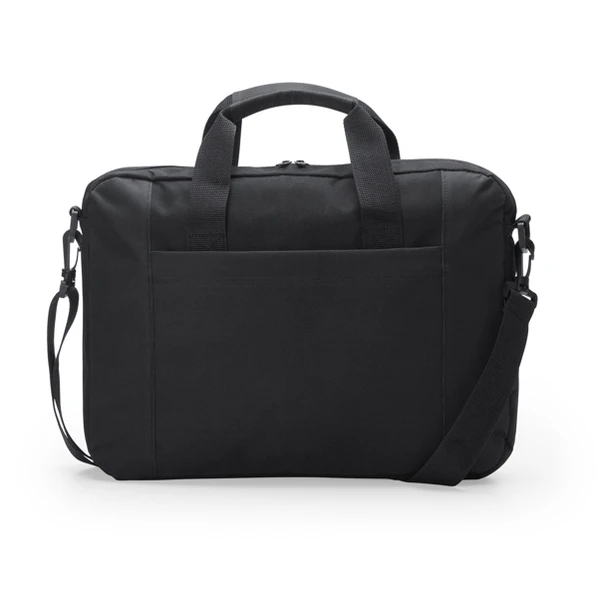 Мягкая черная сумка для ноутбука Lora из мягкого полиэстера 600D с внешним карманом. Подходящие ручки для переноски и регулируемый плечевой ремень с карабином.