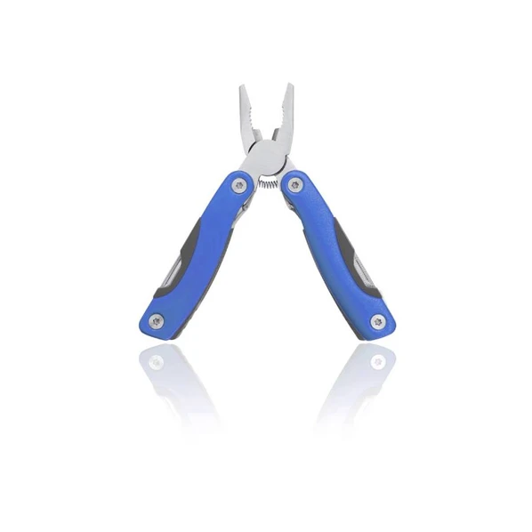 Удобный универсальный инструмент с 12 функциями. Выполнен из прочной нержавеющей стали, ручка сделана из износостойкого алюминиевого сплава. Большой функционал, в том числе плоскогубцы, кусачки, пила, несколько видов лезвий, отвертки шлицевая и крестовая, шило, консервный нож-открывашка, пилка для ногтей.