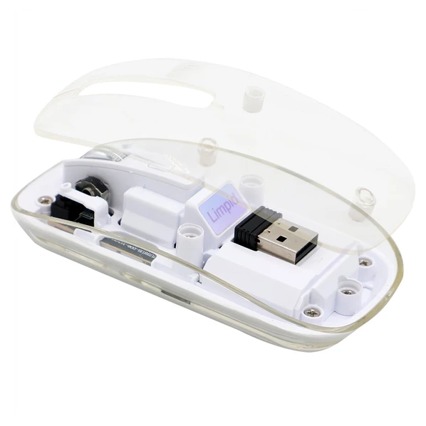 Мышка подключается к компьютеру с помощью USB коннектора. Объем батареи - 400 mAh. Разъем для зарядки - USB Type-C. Внутри мышки располагается область с подстветкой, на которую размещается шильд с лазерной гравировкой вашего логотипа. Эффектная демонтрация вашего бренда!