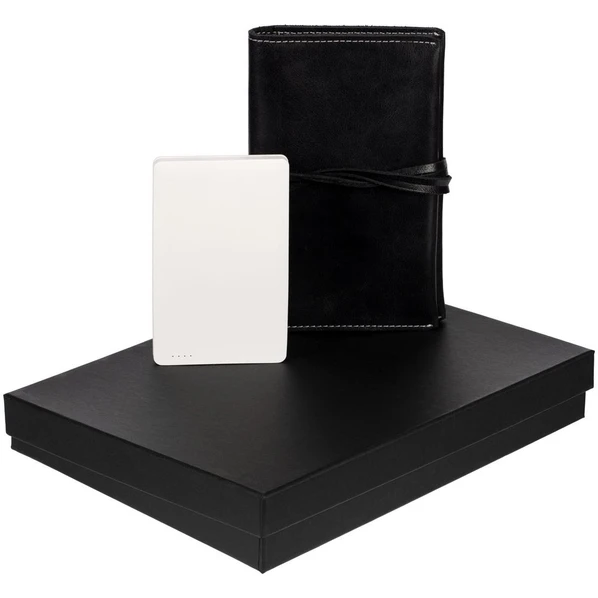 Набор Apache Energy: органайзер кожаный, внешний аккумулятор 4000 mAh, кабель 2 в 1, черный / белый