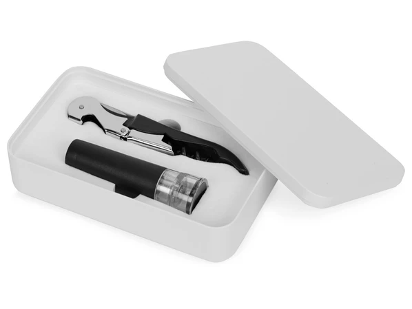 Набор винных аксессуаров Malbec – это функциональный подарок для ценителей алкогольных напитков, состоящий из штопора и вакуумной пробки. С помощью этих аксессуаров обладатель набора сможет с легкостью откупорить бутылку вина, продегустировать напиток, создать внутри бутылки вакуум и отложить ее на некоторое время.