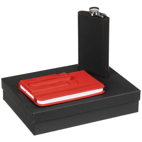 Набор Beatum Bene: блокнот, фляжка, чехол для карты, красный / черный - фото № 1