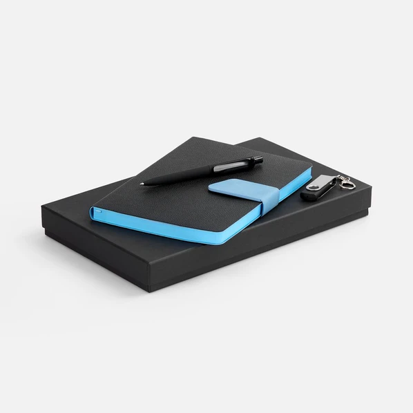 Подарочный черно-голубой набор Boom Memory — практичное и универсальное решение для рабочих задач и презентаций. Комплект объединяет полезные аксессуары, оформленные в едином современном стиле.